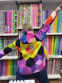 Join expert Lorena Uriarte to learn how to turn quilted fabric or a finished quilt into a cosy coat. The workshop covers pattern selection, the impact of quilting and wadding on drape, cutting pieces (including collar, hood, & pockets), sewing techniques, bias-binding seams, and closures. You'll finish with a nearly completed quilt coat, with any remaining binding to finish at home. Requirements: Your quilt must be quilted prior to class. Plus you will need to choose a quilted coat pattern that suits you and your body type. Recommended patterns are: Tamarack Jacket by Grainline Studiosm (as per the class image), Chore Coat by Patchwork & Poodles, Elemental Coat by Crinkle Dreams, and Wildwood Jacket by Helen’s Closet.